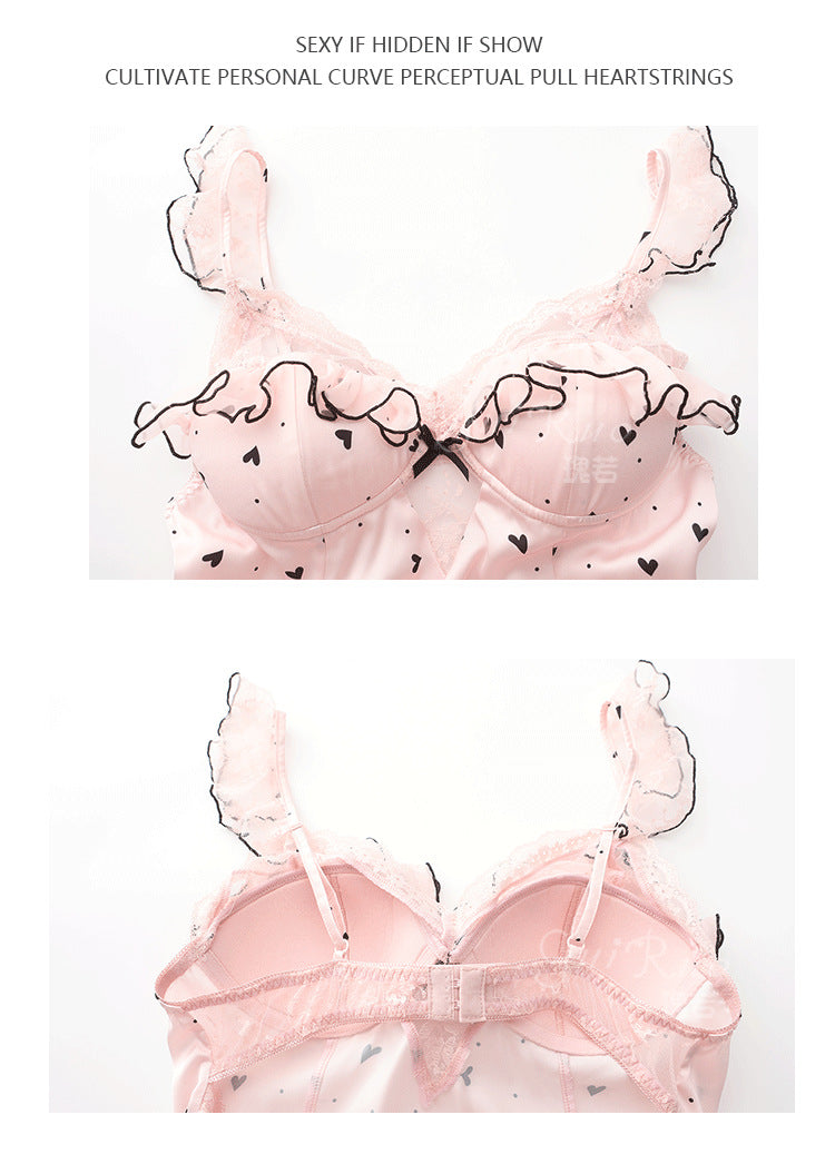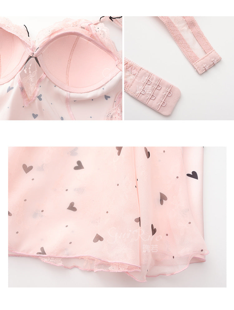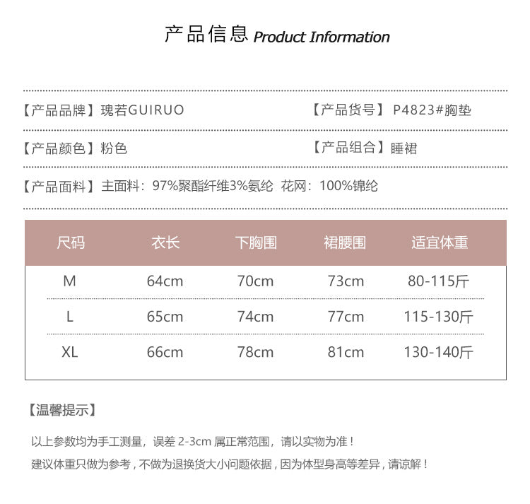 DZ Gorgeous Ice Silk Nightdress Sweet Mesh Lace with Chest Pads Plus Size Strap Nightdress Lazy Style Set P4823