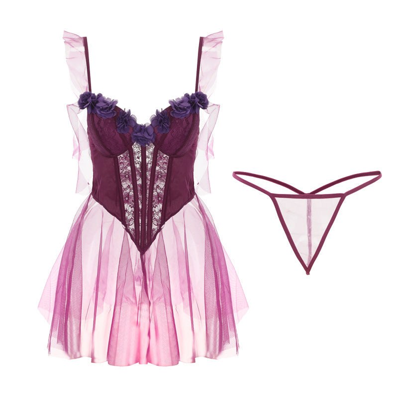 DZ Gorgeous Plus Size Lingerie Passionate Temptation Sheer Mesh Lazy Sleepwear with Chest Pads Sexy Set A5144