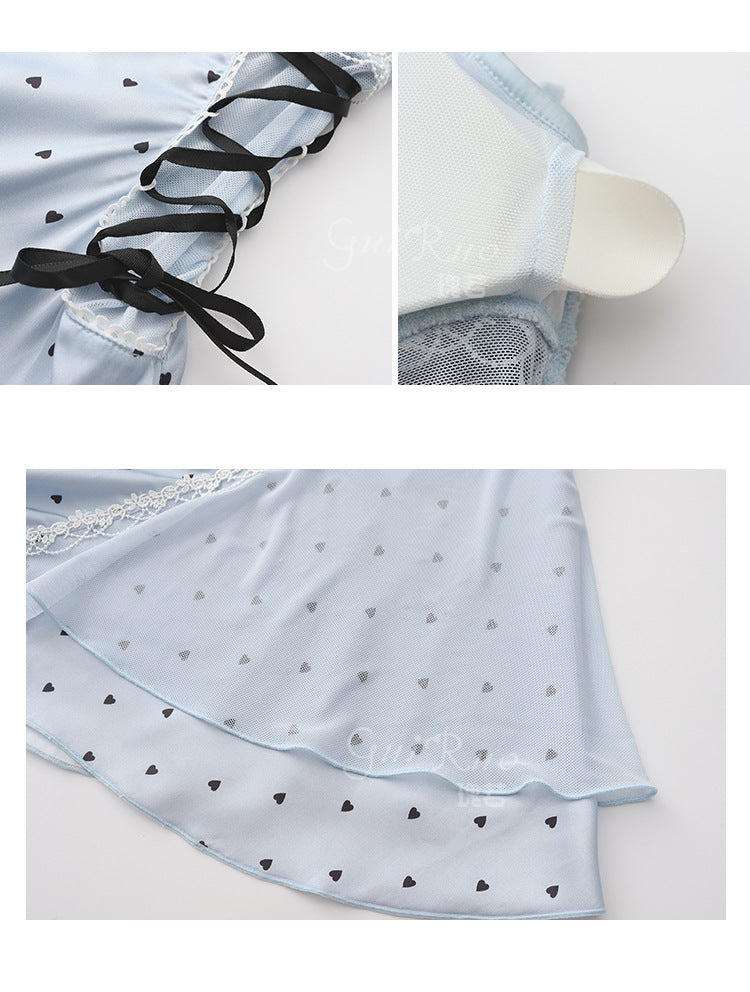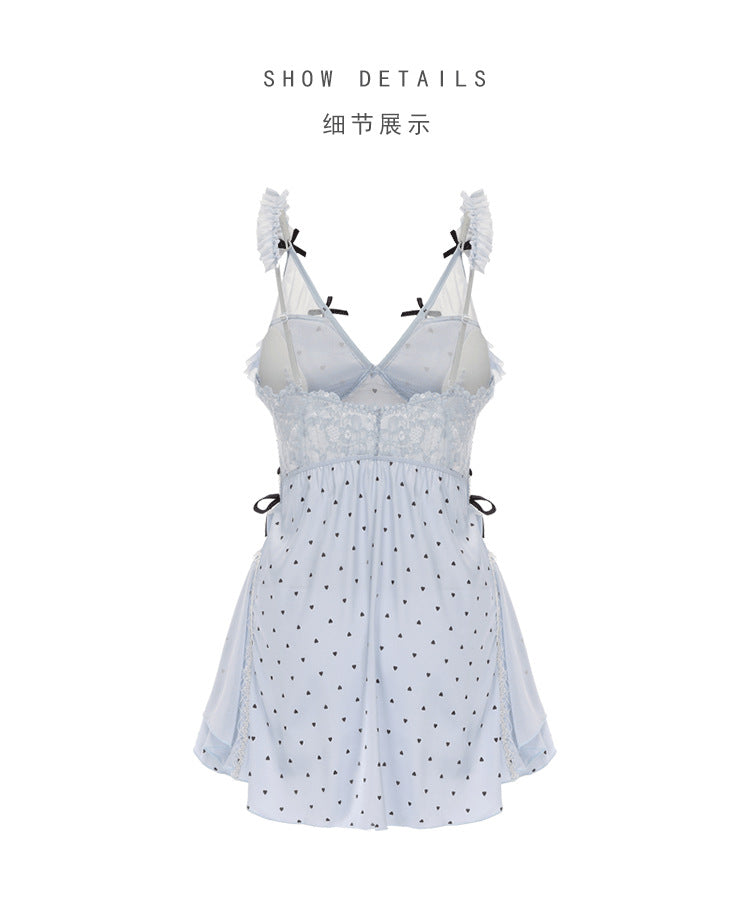 DZ Gorgeous Sexy Temptation Padded Bra Transparent Mesh Smooth Ice Silk Camisole Nightdress Deep V Suit P4848