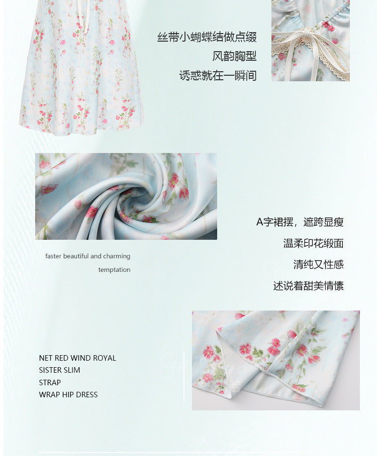 DZ Graceful New Luxury Silky Satin Printed Nightdress Sexy Temptation with Chest Pads Plus Size Set5298