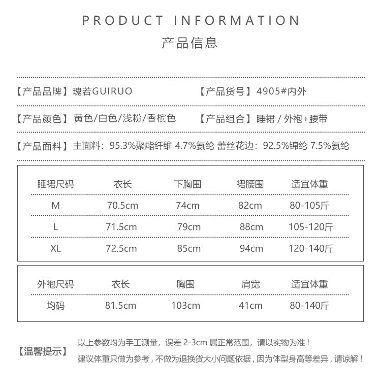 DZ Luxurious and Sexy Nightdress with Chest Pads, Sweet Ice Silk Nightgown and Robe Home Set4905