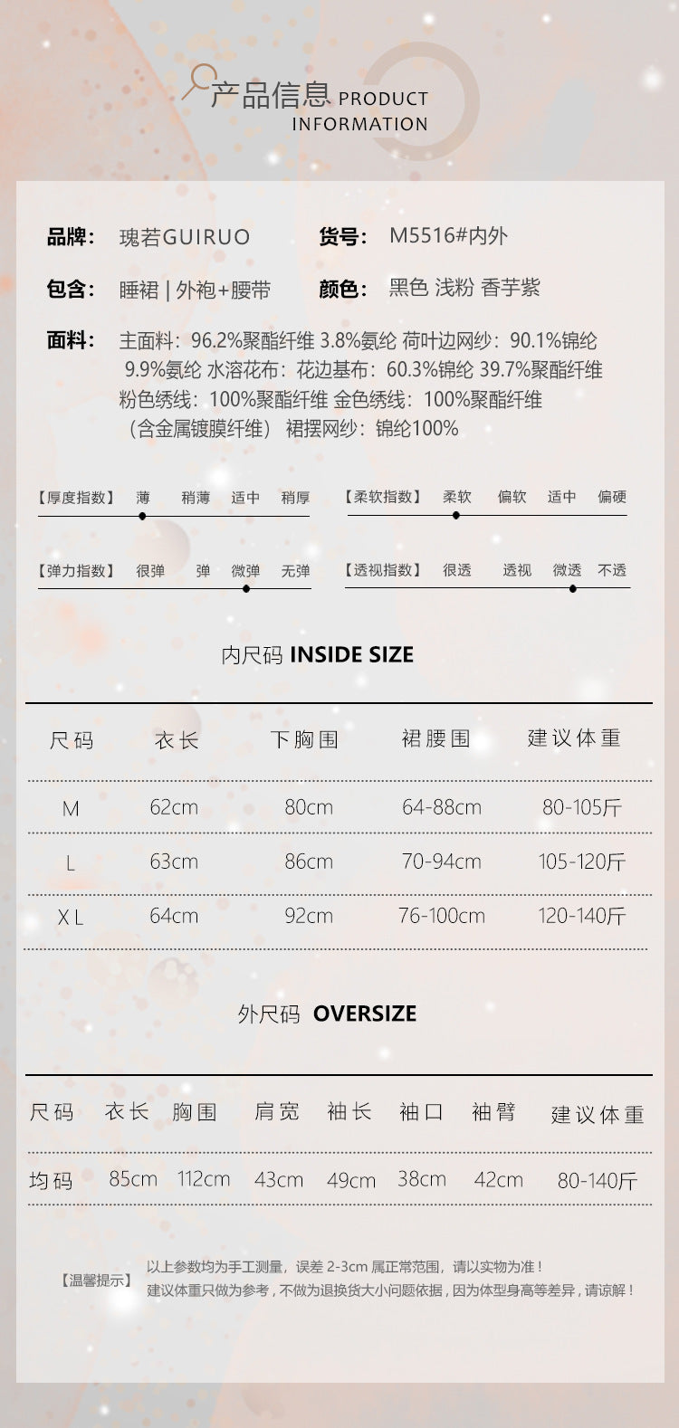 DZ Luxurious Ice Silk Lingerie Sweet Temptation Lace Deep V Padded Nightdress with Open Front Robe Set M5516