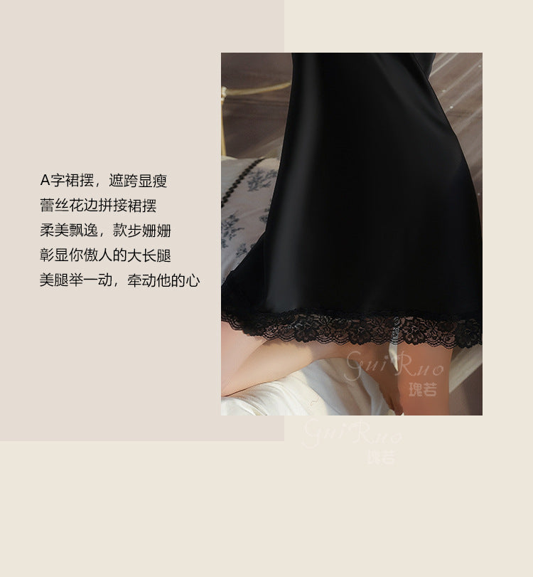 DZ Magnificent and fiery deep V Sexy Backless Lace Smooth Satin Nightdress Set with Chest Pads5585
