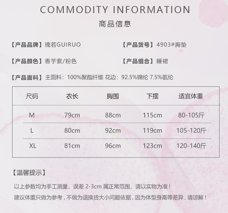 DZ Rose-like Deep V Padded Bra Sweet Sheer Chiffon Pure Desire Lace Camisole Nightdress Homewear Set4903