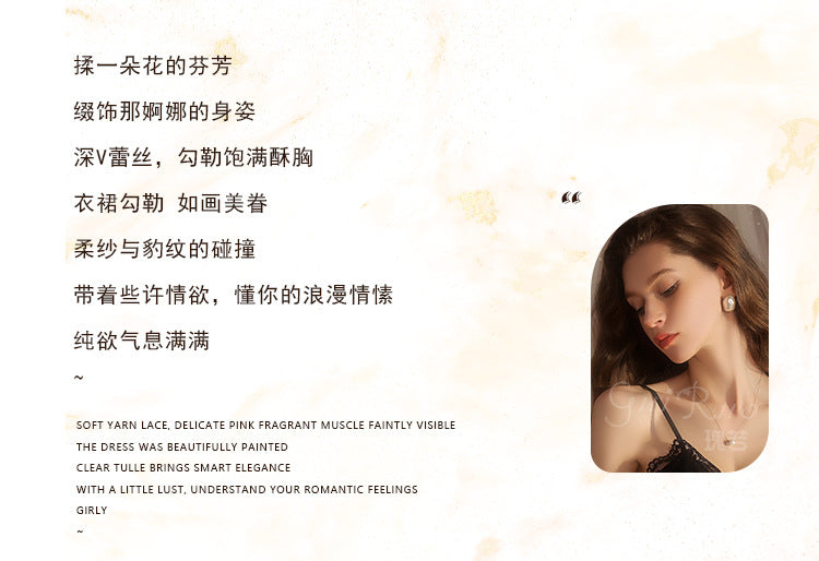 DZ Rose-like Deep V Push-Up Padded Nightdress with Sheer Mesh Lace Pure Desire Satin Leopard Print Nightgown Set5394