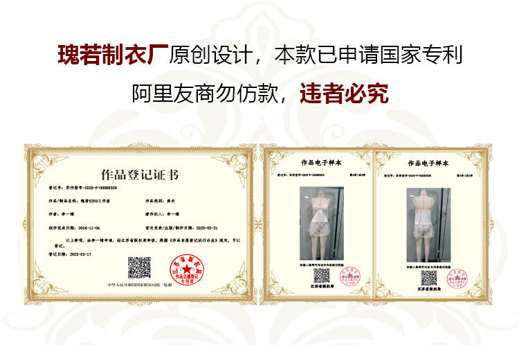 Rose-like Deep V Push-Up Padded Ice Silk Lingerie Passionate Temptation Mesh Camisole Long and Short Pants Three-Piece Set5259