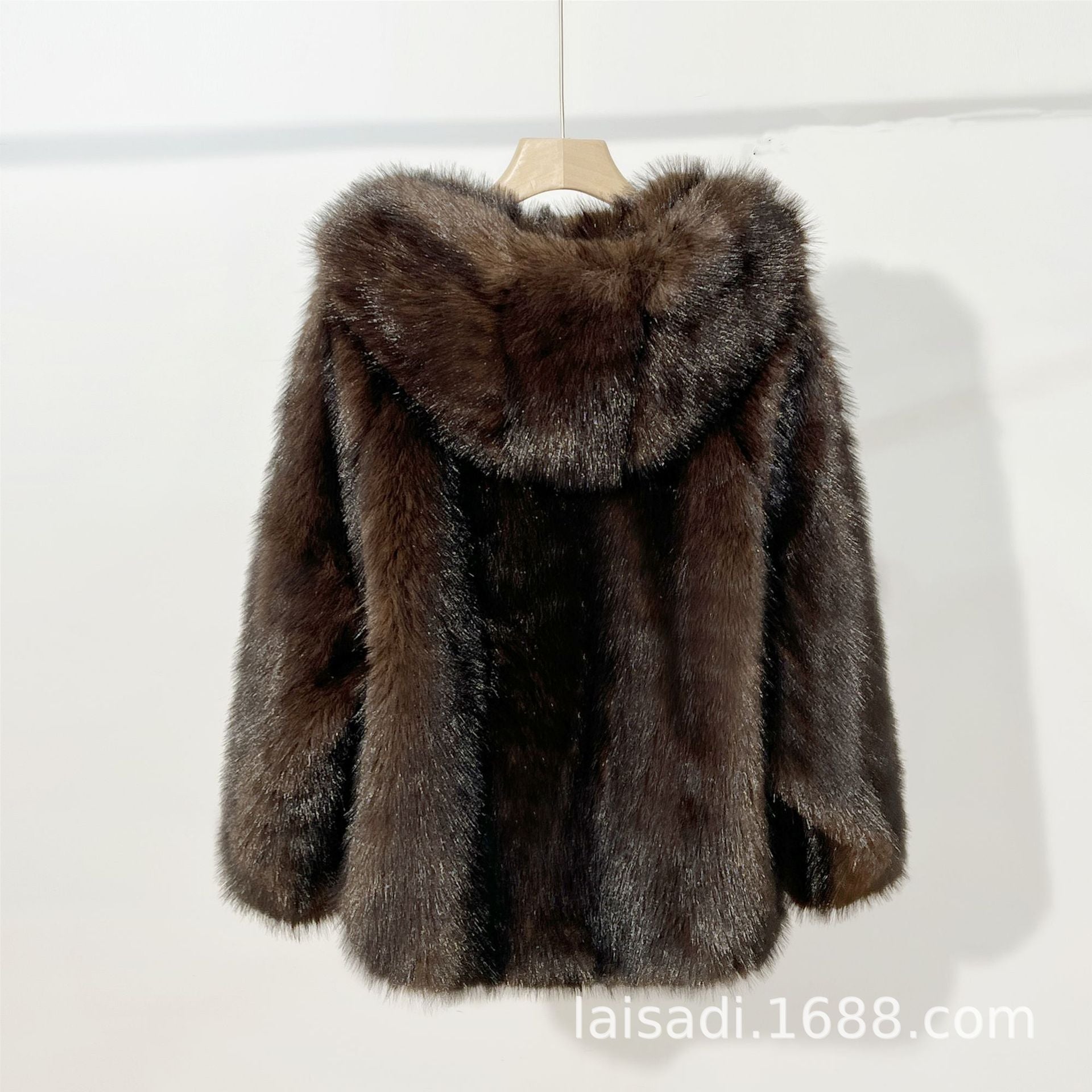 Solid Color Hooded Fur Coat Cross-Border European and American Style Eye-Catching Warm Comfortable Fashionable Fur